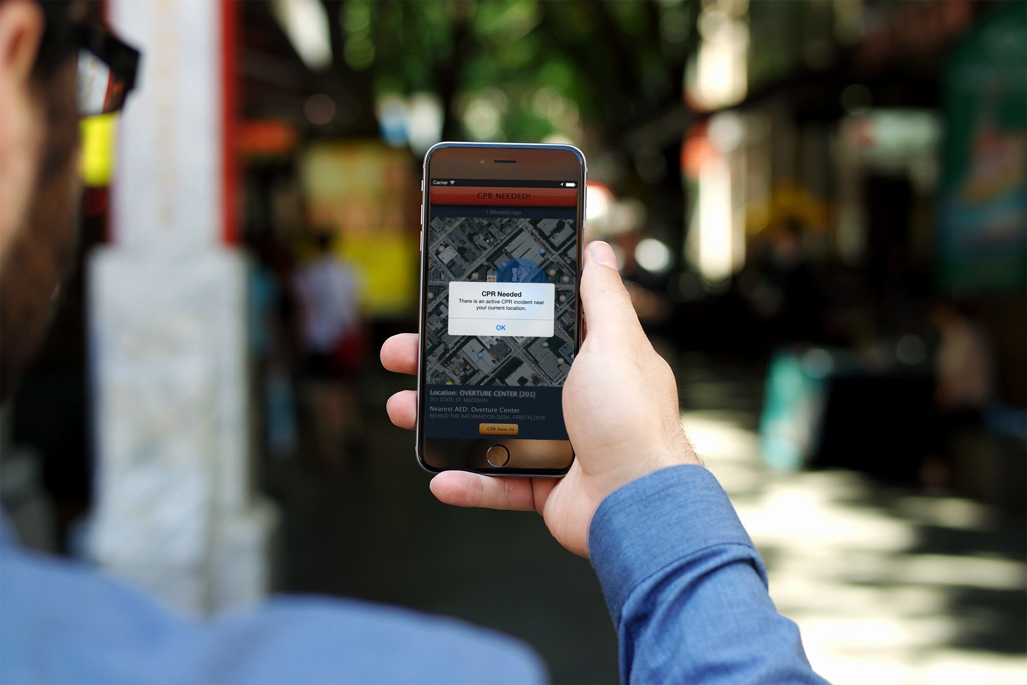 Users can now receive notification if someone nearby is having a cardiac emergency and may require CPR. If the cardiac emergency is in a public place, the location-aware app will alert trained citizens within a geographic radius of the need for bystander CPR. In addition to notifying the user’s phone, the app will also direct the citizen rescuer to the exact location of the closest publicly accessible Automated External Defibrillator (AED).
